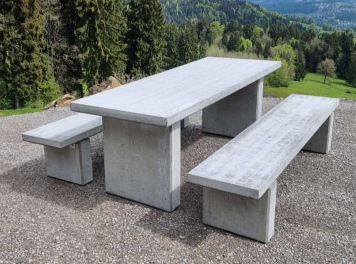 Tisch und Bank aus Leichtbeton ohne Holzauflage